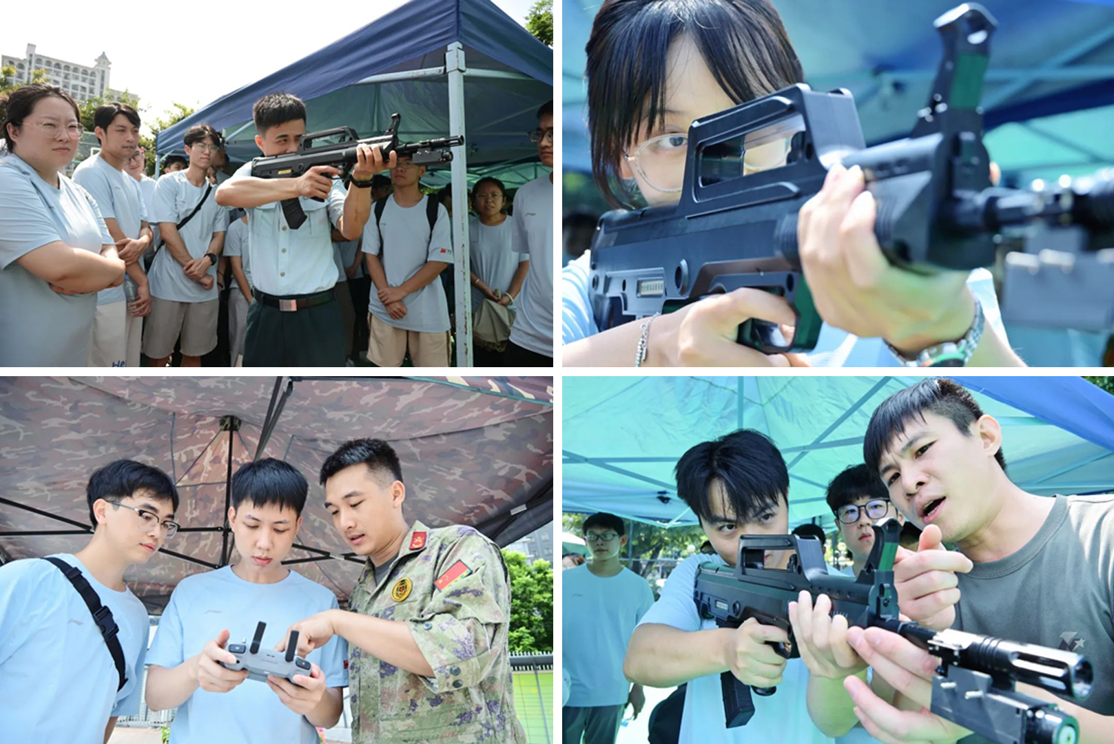 場(chǎng)內(nèi)儀式結(jié)束后,戶外國(guó)防教育體驗(yàn)區(qū)迅速成為熱門(mén)打卡點(diǎn),吸引了眾多員工踴躍參與。其中,模擬射擊靶場(chǎng)、戰(zhàn)術(shù)穿越機(jī)挑戰(zhàn)和無(wú)人機(jī)操控三大體驗(yàn)項(xiàng)目尤為火爆,現(xiàn)場(chǎng)氣氛熱烈。員工們通過(guò)零距離接觸國(guó)防裝備、沉浸式體驗(yàn)軍事科技,在互動(dòng)中深刻感受到國(guó)防建設(shè)的獨(dú)特魅力。這種“可觸摸的國(guó)防”體驗(yàn)?zāi)J剑粌H刷新了員工對(duì)現(xiàn)代軍事科技的認(rèn)知,更激發(fā)了支持國(guó)防、熱愛(ài)國(guó)防的濃厚熱情。