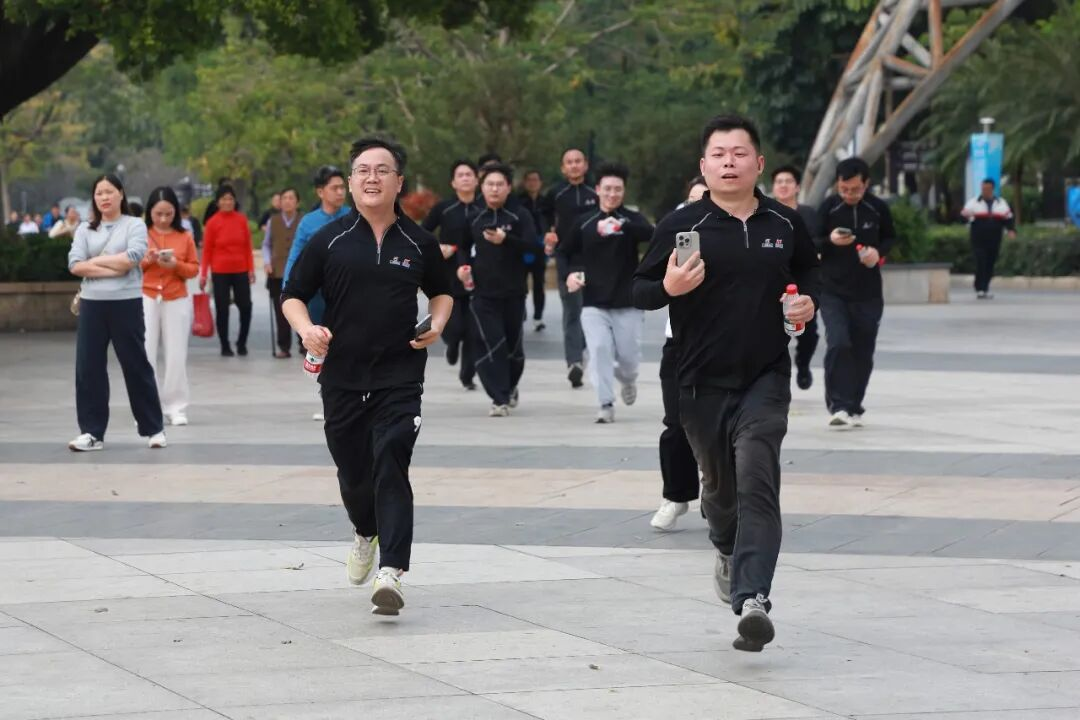 樂跑途中,浩浩蕩蕩的隊伍穿梭在牌坊公園綠道,整齊的步伐、昂揚的姿態(tài),與周邊的綠樹繁花、湖光山色相映成趣,成為七星巖湖畔一道躍動的風(fēng)景線。500多名樂跑隊員并肩奔跑、彼此鼓勁,有的奮力奔跑、全力沖刺,以最快速度向著終點進發(fā);有的穩(wěn)步前行、攜手共進,在奔跑中感受團隊協(xié)作的動力。約4公里的賽道上,風(fēng)華人以“永爭第一”鐵軍精神向目標(biāo)奮進,把奔跑的韌勁化作干事的拼勁,把同行的默契凝為攻堅的合力,把逐夢的熱忱鑄成發(fā)展的動能,推動公司不斷攀高躍升。