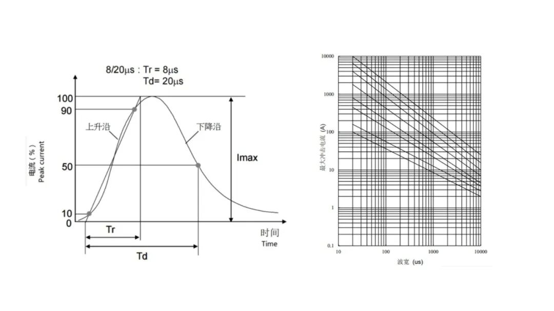 圖表4 8/20 μs標準脈沖波形及脈沖壽命圖