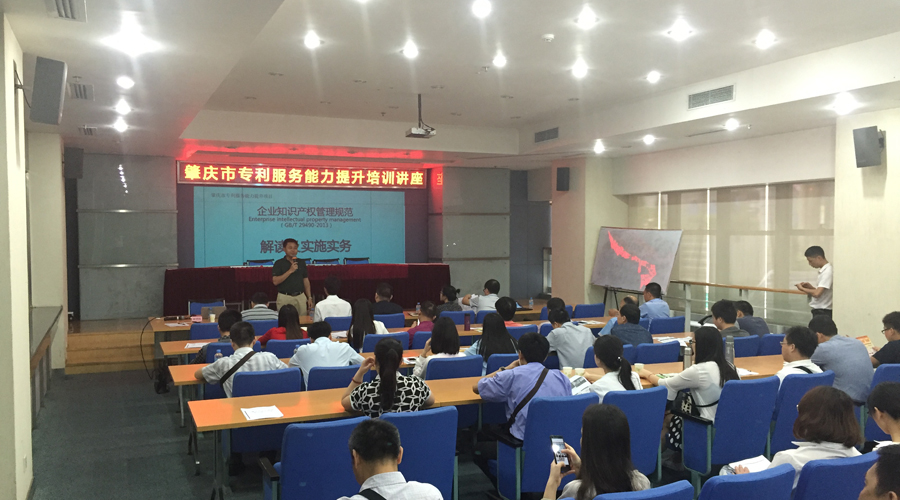 5月5日,在肇慶市知識產(chǎn)權(quán)局的支持下,公司聯(lián)合深圳市知識產(chǎn)權(quán)研究會和中國平安保險公司,舉辦了為期一天的“肇慶市專利服務(wù)能力提升培訓(xùn)講座”。本次培訓(xùn)涵蓋企業(yè)知識產(chǎn)權(quán)貫標(biāo)管理、專利保險、專利質(zhì)押融資、專利侵權(quán)、專利導(dǎo)航、專利挖掘等課程。來自肇慶市各縣區(qū)科技行政管理人員、公司技術(shù)人員及其他企業(yè)人員約120人參加了本次培訓(xùn)。