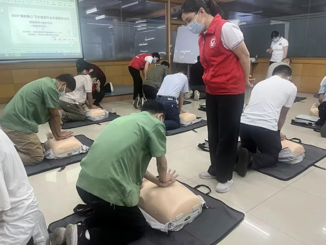 培訓現(xiàn)場,員工們學習熱情高漲,全神貫注傾聽講解,爭先恐后參與實操。在心肺復蘇模擬環(huán)節(jié),大家輪流上陣,相互糾錯指正動作,確保每一個步驟都準確到位。志愿者在旁耐心指導講解,現(xiàn)場氣氛既緊張又活躍。