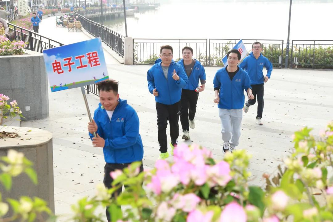用腳步丈量奮斗,用汗水澆灌熱情。一支綿延的員工隊伍,浩浩蕩蕩地穿梭在牌坊公園綠道中,紅藍相間的衣服色彩與綠樹繁花相映成趣,為公園增添一道靚麗風景。大家步伐堅定,充滿干勁地跑向5公里外的七星巖東門廣場,用奔跑的姿態(tài),用汗水與活力,一起奔向明媚的春天。