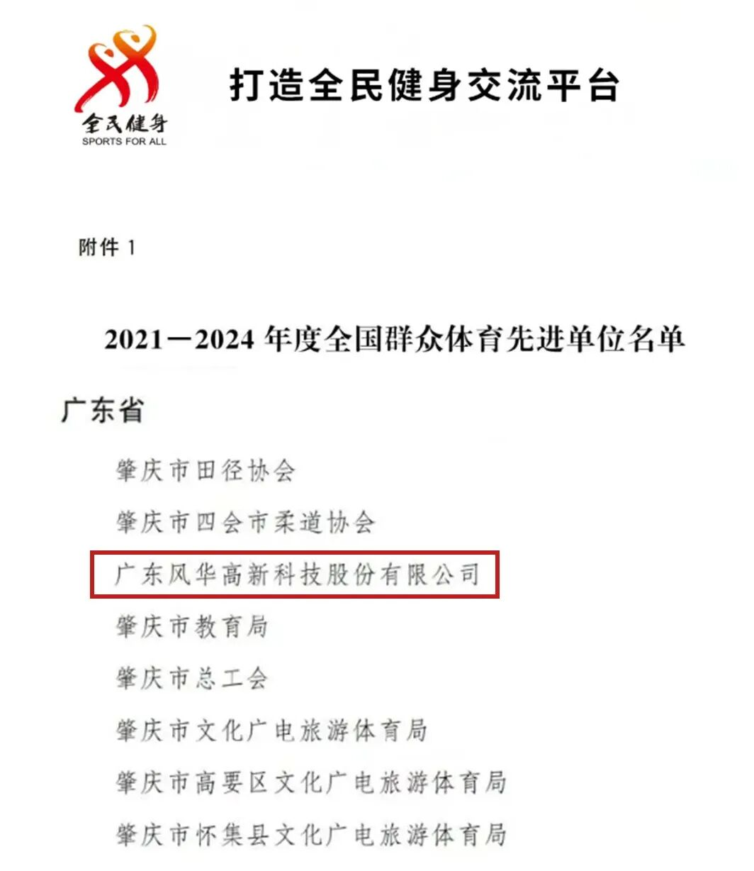【喜訊】風(fēng)華高科獲評“全國群眾體育先進(jìn)單位”