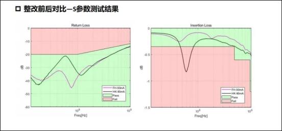 圖5 整改前后S參數對比(FH為整改后曲線,HK為整改前曲線)