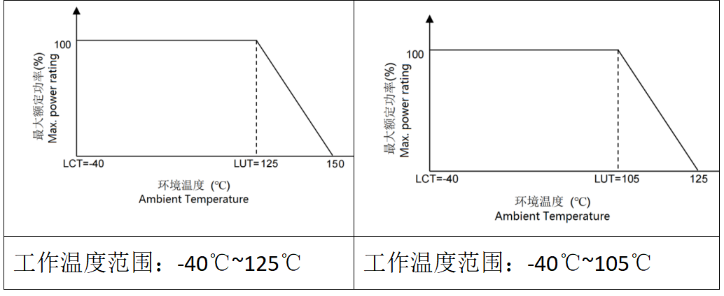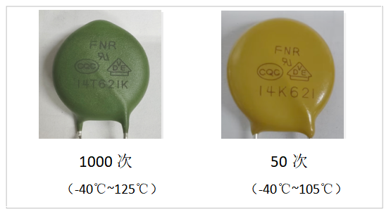 圖表2 車規(guī)壓敏電阻和常規(guī)壓敏電阻的工作溫度對比